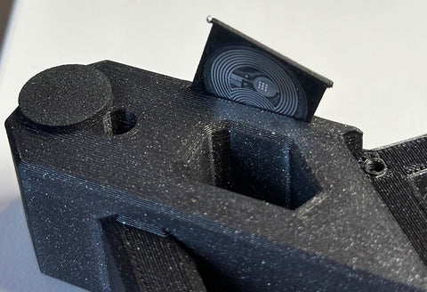 A 3D printed mini slot that supports the NFC tag to be added into a hollow section of your 3D printed product. It can be added after the print is ready or even using a pause in the slicer software added during printing. The 3D printed slot gives the extra support that the NFC PVC-based sticker needs to be firmly inserted. Makes it easier to slot in after printing. The slot is 3D printed locally in Los Angeles with 100% recycled materials. The 18 mm NFC Tag 213 is included in the slot, ready to be programmed with the whatt.io tools, incendo or any other NFC tool. For larger volumes please contact us.