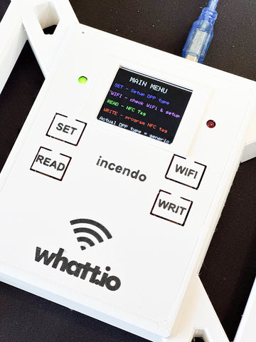 The incendo WHITE edition is mainly intended for programming NFC tags with DPP level in UNIT mode and can work in environments where automation and mass programming of tags in products are needed. It has to be connected to the whatt.io API over WiFi and the device needs to be registered in the whatt.io cloud w API access.