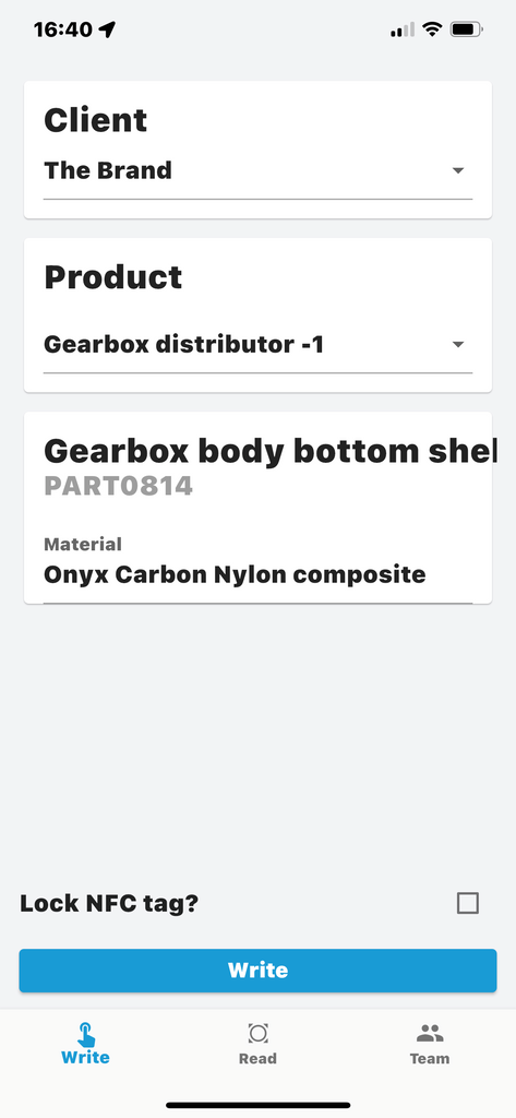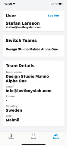 Our APP for Apple IoS is free of charge and you find the download below in the link. It can be used with whatt.io back office with all subscription levels from free to Diamond level. It will allow you to login with your whatt.io credentials and then swap between your teams and then program NFC tags type 2 with minimum 144 bytes of memory and supporting ISO14443A.